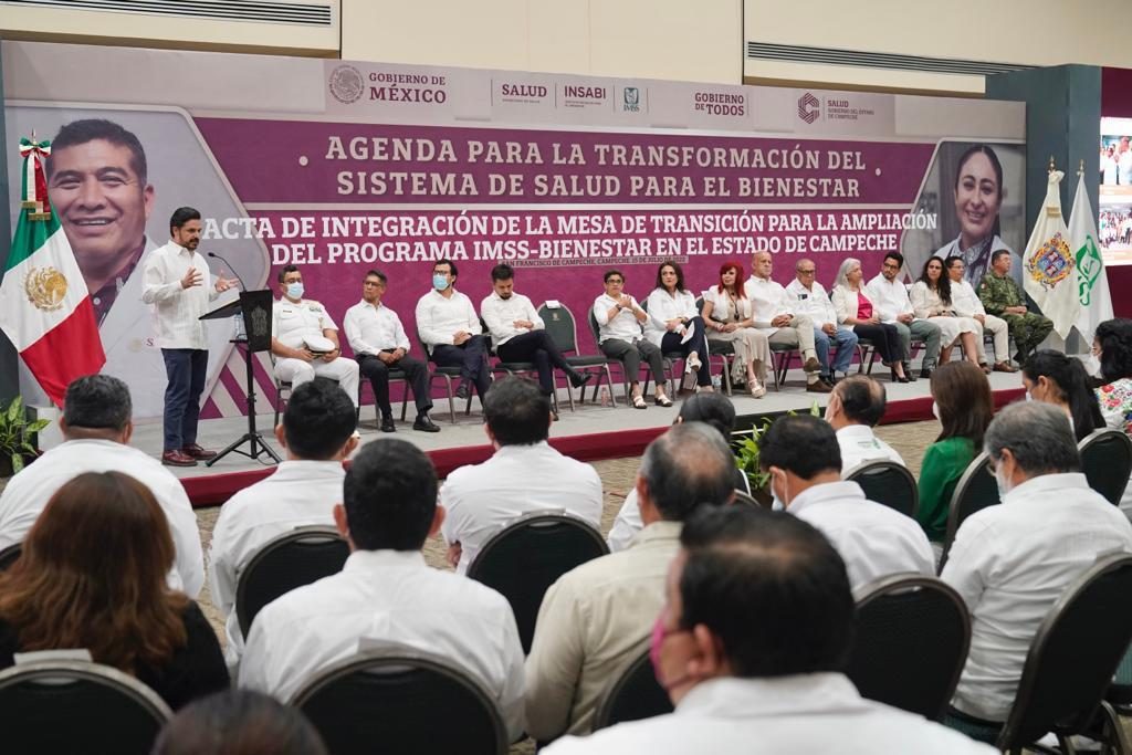 Para brindar servicios de salud de alta calidad y eficiencia a la población de Campeche, con infraestructura digna, abasto de medicamentos, equipamiento y personal suficiente, el gobierno federal, a través del Instituto Mexicano del Seguro Social (IMSS) y el Instituto de Salud para el Bienestar (Insabi), firmaron con el gobierno estatal el acta de integración de la mesa de transición para la ampliación del Programa IMSS-BIENESTAR.