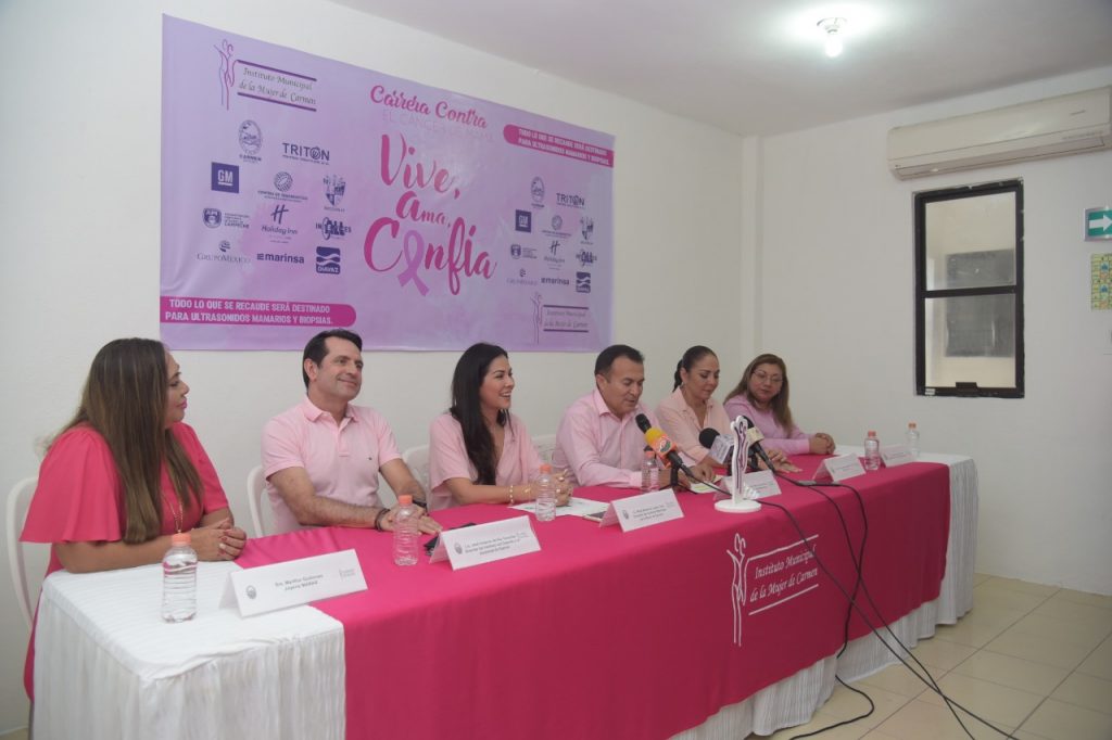 Con el firme compromiso de generar el empoderamiento de la mujer carmelita, el Presidente Municipal de Carmen, Óscar Román Rosas González, asistió a la presentación de la Carrera Contra el Cáncer de Mama “Vive, Ama y Confía”, la cual tiene como objetivo recaudar fondos que serán utilizados en ultrasonidos mamarios y biopsia.