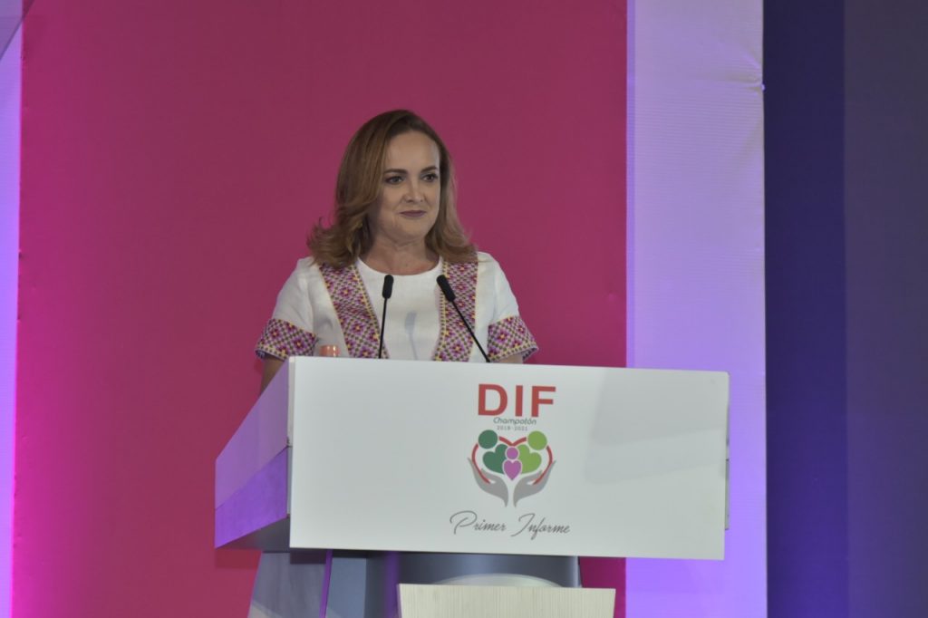 “Hoy no es el cierre de un año, sino el inicio de otro, redoblaremos esfuerzos para seguir atendiendo a las familias que más lo necesitan, por delante todavía hay muchos retos que enfrentar y los vamos a superar, hoy el corazón generoso de los champotoneros late con más fuerza que nunca, con la convicción de que la DIFerencia la hacemos unidos”, subrayó la Presidenta del Sistema DIF municipal de Champotón, Eréndira del Valle de León, al rendir su Primer Informe de Actividades en presencia de la Presidenta del DIF Estatal, Victoria Damas de Aysa, a quien felicitó por sus excelentes logros a favor de quienes menos tienen y más lo necesitan.
