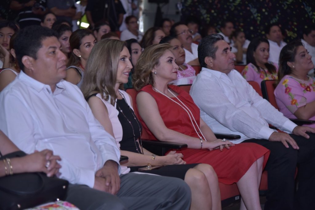 En la ceremonia realizada en el teatro de la ciudad “Virgilio Barrera Vega”, la Presidenta del Patronato del DIF Champotón estuvo acompañada por su esposo, el Presidente Municipal, Daniel Martín León Cruz; la Directora General del SEDIF, Sonia María Castilla Treviño; las Presidentas de los DIF municipales y autoridades de los tres órdenes de gobierno.