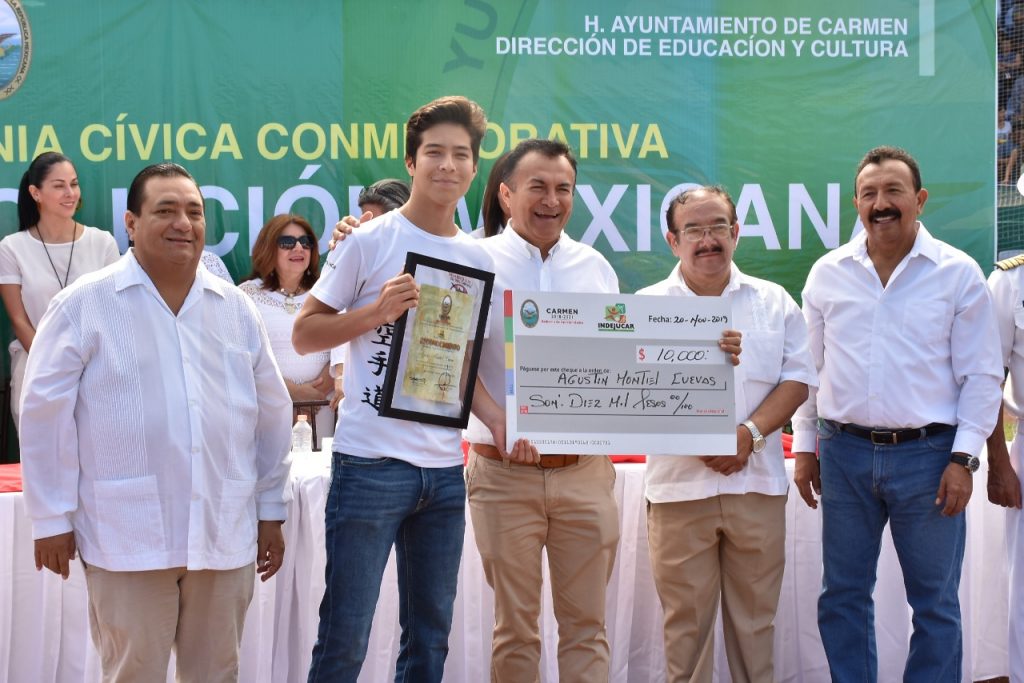 Asimismo, el Edil carmelita, Óscar Rosas González, entregó el Premio Municipal del Deporte a: Agustín Montiel Cuevas por su destacada participación en Karate quien recibió de manos del Alcalde la cantidad de 10 mil pesos.