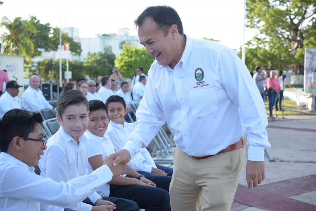 Estuvieron en el Presídium: El Presidente Municipal de Carmen, Óscar Román Rosas González; el Comandante de la Séptima Zona Naval, Alejandro Miranda Oceguera; el Capitán de Altura, Ildefonso Carrillo Mora; en representación del Subsecretario de Gobierno del Estado, Ramón Rodríguez García, la Directora Administrativa de la Secretaría de Gobierno, Priscila Ehuan Lugo; el Secretario del Ayuntamiento, Carlos Alberto Arjona Gutiérrez; el Segundo Regidor, Perfecto Balán Chi y la Jefa de de la Unidad de Servicios Regionales de la SEDUC, Yara Teresa Notario Pérez.
