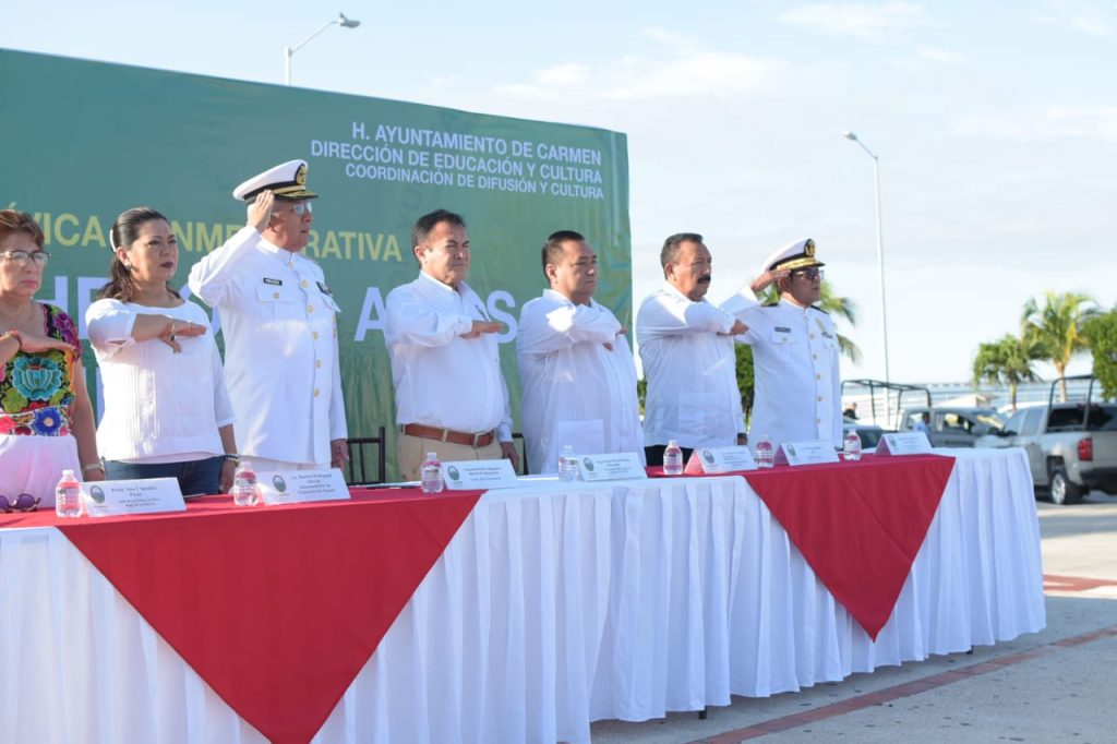 Durante el evento y con ayuda de la banda de guerra de la Séptima Zona Naval se realizaron los honores a la bandera donde con orgullo se entonó nuestro glorioso himno nacional mexicano y campechano.