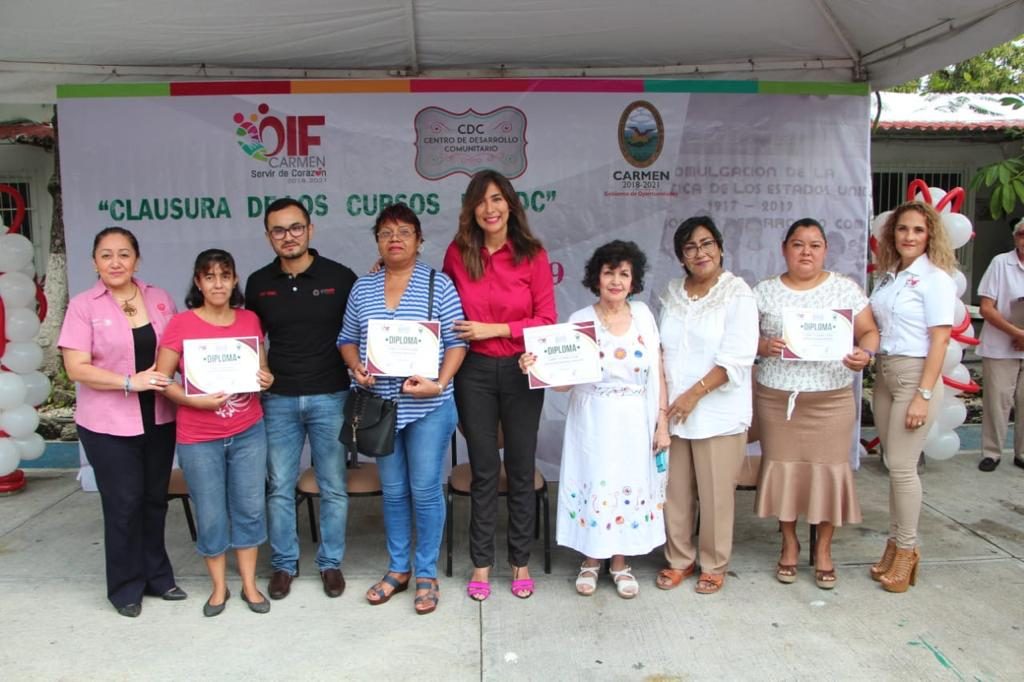 Resaltó, que el DIF Carmen, que preside en su Patronato la licenciada Viridiana Suárez de Rosas, continuará trabajando en la oferta de más cursos de capacitación y en el fortalecimiento de los Centros de Desarrollo Comunitario, en beneficio de las personas usuarias de los servicios.