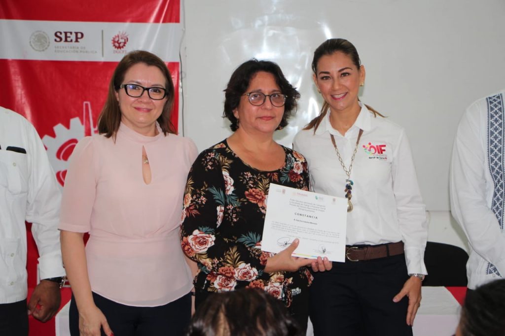 La Presidenta del Patronato del DIF Carmen, acompañada de la Secretaria del Trabajo y Previsión Social del Poder Ejecutivo del Estado, hizo entrega de constancias de conclusión del curso, mismo que beneficio a 25 personas, impartido con el apoyo del Centro de Capacitación para el Trabajo Industrial (CECATI) No. 50.