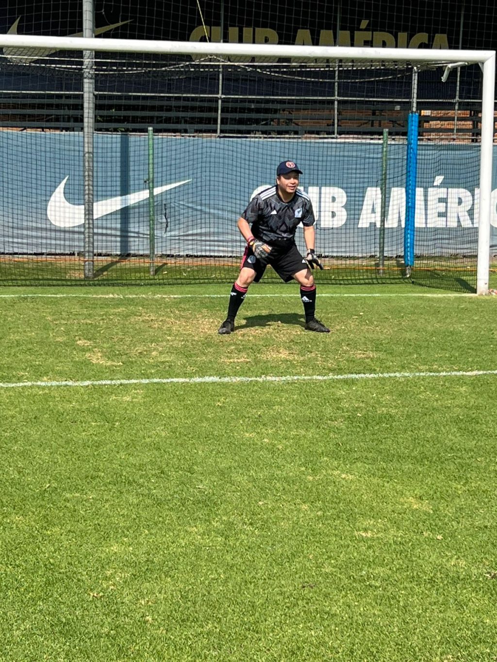 Enfundado en la playera de la Selección Mexicana y mostrando su amor por el Club América en la gorra, Cazarín asumió la posición de portero, con un estilo de juego que hace recordar al arquero azteca Jorge Campos: chaparrito pero atrevido, con garra y lucha para impedir que el esférico entre en su arco.