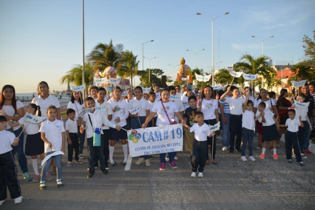 En la caminata que se desarrolló a lo largo del malecón del centro de la isla, tomaron parte alumnos, docentes y padres de familia de los Centros de Atención Múltiple (CAM) No. 7, 17 y 19, así como las Unidades de Servicio y Apoyo a la Educación Regular (USAER) No. 8, 21, 28, 37 y 59.