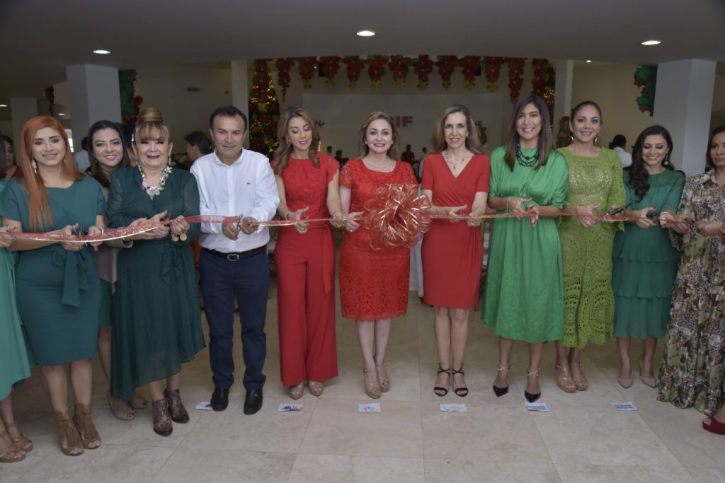 La Presidenta del Patronato del Sistema Estatal para el Desarrollo Integral de la Familia (DIF) Victoria Damas de Aysa, acompañada de la Presidenta del DIF Municipal Carmen, Viridiana Suárez de Rosas, cortaron el listón inaugural del Bazar Navideño 2019 instalado en el Casino del Mar del Centro de Convenciones Siglo XXI.