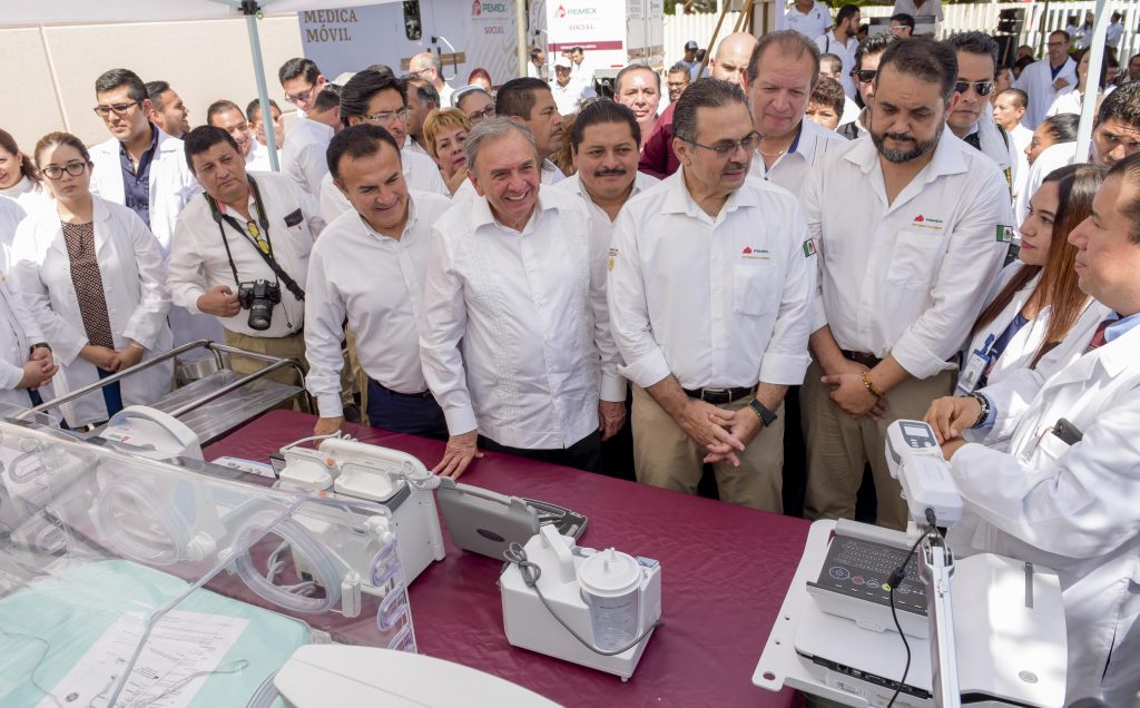 “De lo que se trata es procurar una relación creciente y fortalecida para que la paraestatal pueda avanzar en sus propósitos industriales y nosotros podamos impulsar nuestros objetivos de desarrollo social y económico, así como de conservación ambiental”, expuso el mandatario durante el acto donde se entregaron 10 motopatrullas, un camión tipo Vactor, una ambulancia de cuidados intensivos y equipamiento médico al hospital general Dra. María del Socorro Quiroga Aguilar, y se puso en servicio la unidad médica móvil de Pemex.