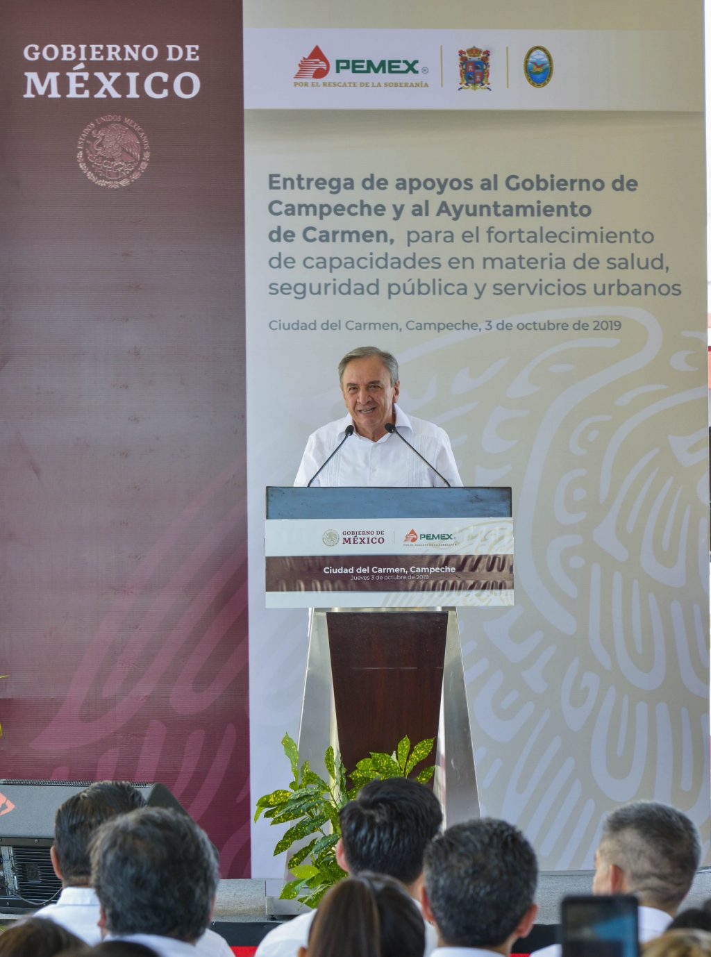 Previo a la entrega de los equipos, el director general de Pemex reveló que se encuentra en proceso la donación de combustible y asfalto por un monto de 337 millones de pesos, y antes que concluya el año canalizarán otros 16 millones de pesos en apoyos al sector pesquero, a un centro de atención múltiple de la colonia Renovación, para canchas de usos múltiples, mobiliario a planteles de educación básica y una planta potabilizadora para Nuevo Campechito.