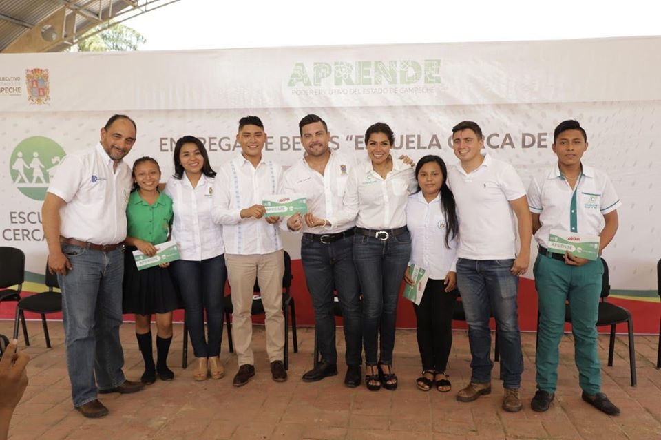 En la cabecera municipal de Hopelchén, después de colocar la primera piedra de lo que será el Albergue para la Atención a la Mujer Embarazada (AME), Castro Bello, la alcaldesa Sandy Areli Baas Cauich y el diputado Emilio Lara Calderón, entregaron becas «Escuela Cerca de Ti» a 263 estudiantes.
