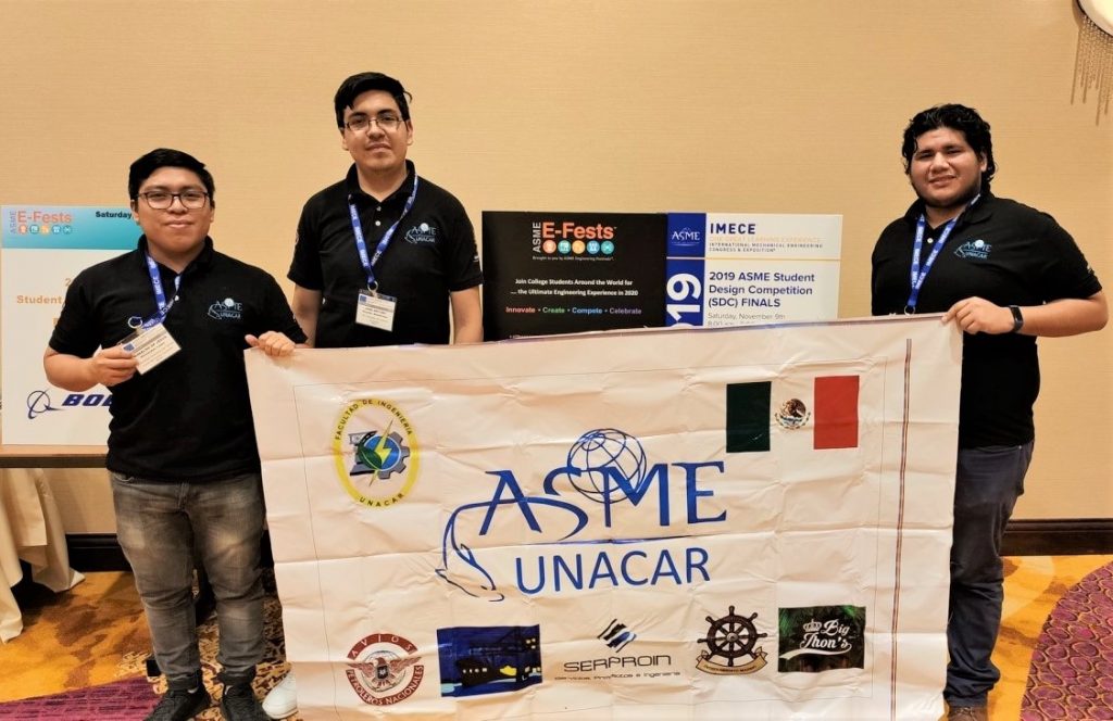 El congreso mundial IMECE se realiza cada año, siendo la primera vez que participan estudiantes de la UNACAR. Cabe mencionar que a dicho evento se llegó a través de la eliminatoria regional del ASME E-FEST América Central y Sudamérica, del evento denominado Student Design Competition (SDC 2019); otras sedes eliminatorias alrededor del mundo fueron Norte América, Europa y Asia; con el objetivo de que 16 equipos de todo el mundo llegarán a participar en la final mundial del SDC 2019.