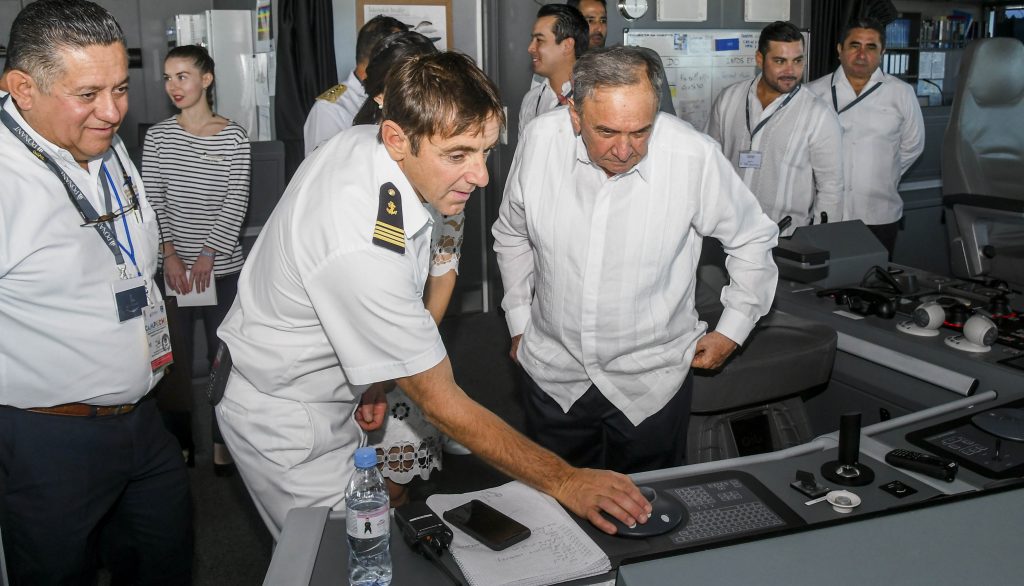 Luego de saludar a la tripulación y turistas franceses, el mandatario entregó una placa con el escudo del Estado de Campeche, para conmemorar el primer arribo del crucero, al capitán Marié Simón y este a su vez hizo lo propio con una correspondiente a la naviera europea Ponant; después, Aysa González efectuó un recorrido por los diversos salones de la embarcación y la cabina de mando.