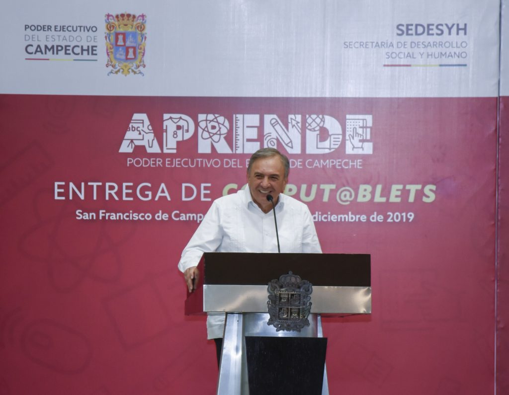 Al hacer entrega, mediante la inversión de 3.7 millones de pesos, de 682 computablets del programa Aprende de la Secretaría de Desarrollo Social y Humano (Sedesyh), a alumnos de nivel medio superior y superior con promedio de excelencia de 54 escuelas públicas del estado, el gobernador Carlos Miguel Aysa González aseguró que con estas acciones se atenúan desigualdades sociales y se construyen caminos más parejos para los jóvenes campechanos.