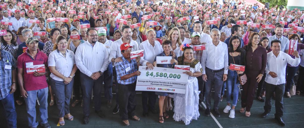 El gobernador Carlos Miguel Aysa González entregó 580 microcréditos y apoyos para mejorar 44 espacios públicos en 34 localidades del municipio de Campeche, por un monto total de cuatro millones 580 mil pesos, provenientes de los programas Crece y Soluciones de la Secretaría de Desarrollo Social y Humano (Sedesyh).