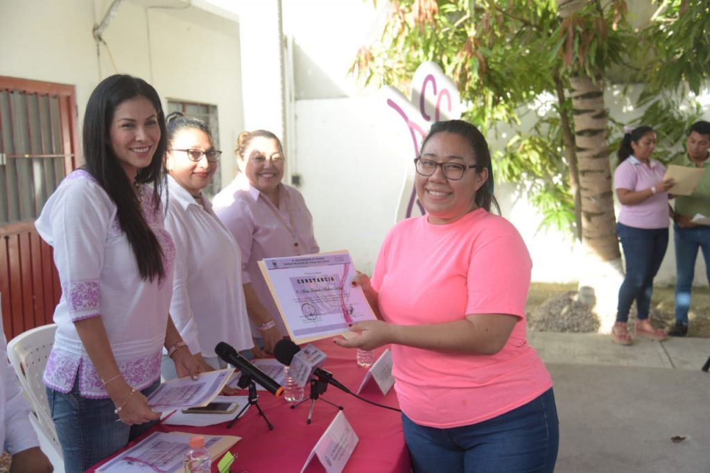 Finalmente la Directora del IMMC, en compañía de la Décima Primera Regidora y Presidenta de la Comisión Edilicia de Juventudes, Grupos Vulnerables, Equidad y Género, Rocío del Carmen Cárdenas Argáez entregó las constancias a las egresadas y sus reconocimientos a las maestras de los cursos.
