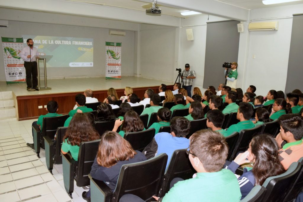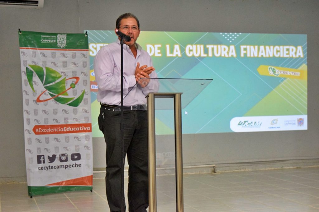El secretario de Desarrollo Económico, Gabriel Escalante Castillo, y la directora del Colegio de Estudios Científicos y Tecnológicos de Campeche (CECYTEC), Laura Baqueiro Ramos, inauguraron la tercera edición de la semana de la Cultura Financiera, en colaboración con el Grupo Financiero Citibanamex, ante 100 jóvenes de esa institución educativa.