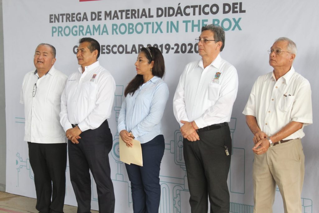 Esto durante la entrega de material didáctico del programa “Robotix in the Box” a 25 escuelas (20 de seguimiento y 5 de nueva integración), en acto simbólico realizado en la Escuela Secundaria Federal número 8. Ahí, titular de la SEDUC precisó que este programa tiene como objetivo que las escuelas integren laboratorios de robótica, a través de los cuales tengan acceso a herramientas de gestión escolar de estos conocimientos tan necesarios en la actualidad.