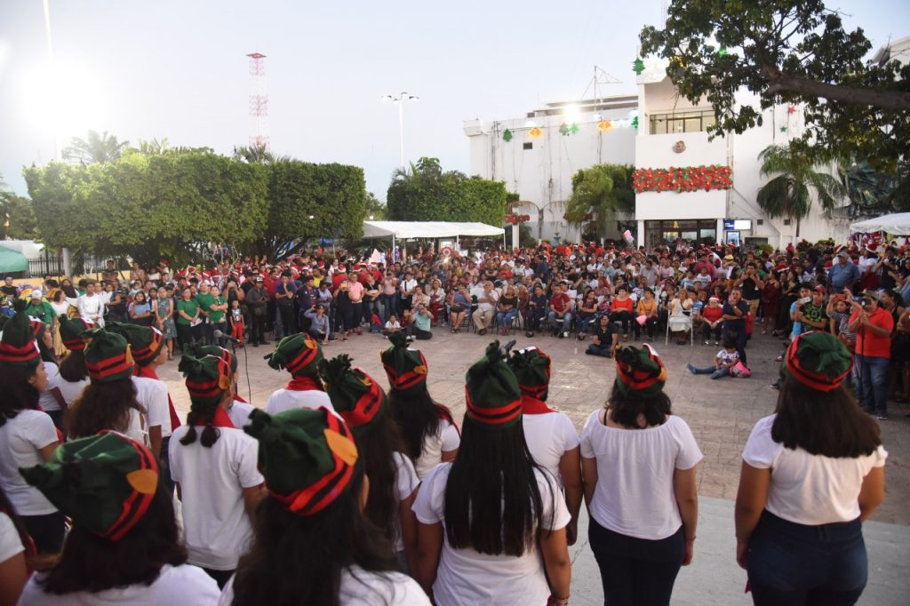 En esta temporada decembrina el H. Ayuntamiento de Carmen continuará realizando diversas actividades que unirá al pueblo carmelita en una sana convivencia, por ello la Plaza Cívica 7 de Agosto se vistió de gala con la participación de varias escuelas.
