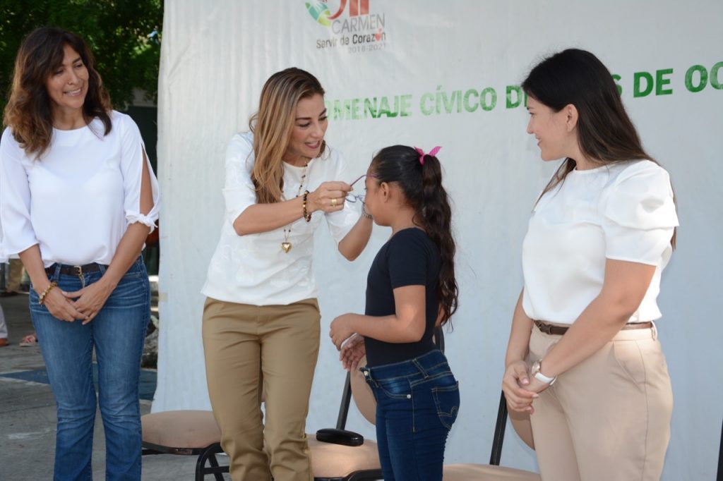 En este marco, Suárez de Rosas, acompañada de la Directora General del Sistema Municipal DIF Carmen, Mayela Rangel Herrera, hicieron entrega de 150 despensas a grupos vulnerables, así mismo fueron otorgados 20 lentes de la campaña permanente de Salud Visual que oferta el organismo asistencial en beneficio de los carmelitas. Previamente se llevó a cabo el homenaje cívico correspondiente al mes de Octubre, con los honores a la bandera y la entonación del Himno Nacional, mismos que estuvieron a cargo de niños y niñas del CADI Santa María.