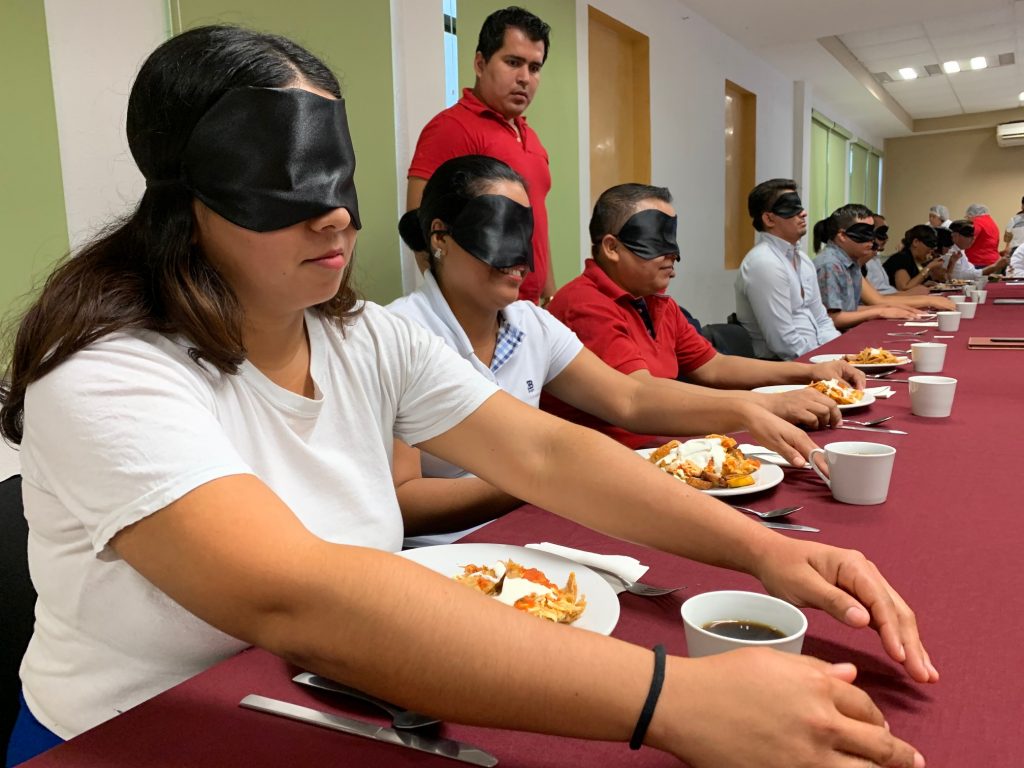 Los asistentes también pudieron colocarse durante el tiempo que duró la capacitación, en el lugar de las personas con discapacidad visual, aplicando la rutina de degustación de alimentos. El taller fue impartido por el instructor Ernesto Villarino Villarino, acompañado del Presidente de la Asociación CREDVI, Oscar Sánchez Jiménez, se realizó como parte de las Jornada Municipales de Discapacidad y en el marco del Día Internacional de las Personas con Discapacidad.