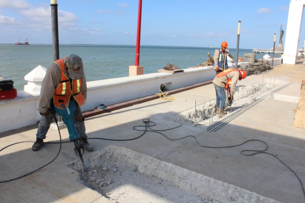 La Administración Portuaria Integral de Campeche (APICAM) realiza trabajos de mantenimiento y reforzamiento del antiguo muelle fiscal de la calle 20 de Ciudad del Carmen, que actualmente forma parte del malecón, donde se invierte 3.10 millones de pesos.