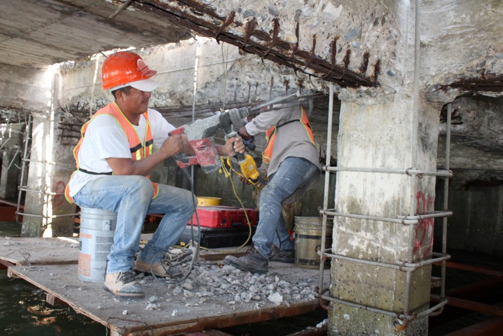 En esta primera etapa, los trabajos comprenden un área total de 1,023 metros cuadrados, que incluye la revisión y reparación de más de 110 pilotes, 223 metros de trabes y losa en tramos aislados.