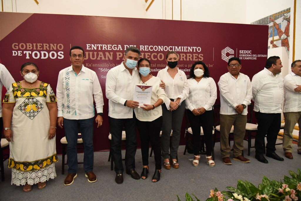 “Hoy estamos reconociéndolos, porque sus años de esfuerzo merecen ser aplaudidos, porque han dedicado su vida a un trabajo constante que desgasta pero que también alimenta el alma y el espíritu. Ustedes todos los días realizan una tarea extraordinaria para pulir gemas perfectas; por eso, llévense el reconocimiento y agradecimiento de Layda Sansores por todo lo que han dado y por todo lo que seguramente seguirán dando a la educación para darle brillo al Campeche de todos”, afirmó.