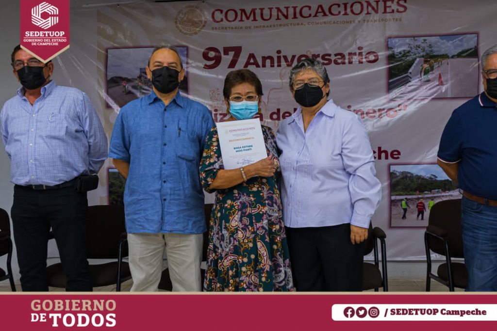 Conmemorando a mujeres y hombres camineros en el marco del 97 aniversario del “Día del Caminero”, Isabel del Carmen Espinosa Segura, titular de la Secretaría de Desarrollo Territorial, Urbano y Obras Públicas (SEDETUOP) acudió en representación de la gobernadora, Layda Sansores San Román, a la ceremonia de entrega de reconocimientos por años de servicio del personal de la Secretaría de Infraestructura, Comunicaciones y Transporte (SICT) Campeche.