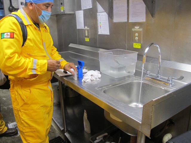 Como parte de esa verificación sanitaria aplicada en plataformas de la Sonda de Campeche, se tomaron muestras a diferentes tipos de alimentos, mismas que fueron enviadas al Laboratorio Estatal de Salud Pública, para su análisis y determinación de la calidad de los mismos, así como del adecuado y correcto manejo de los alimentos.