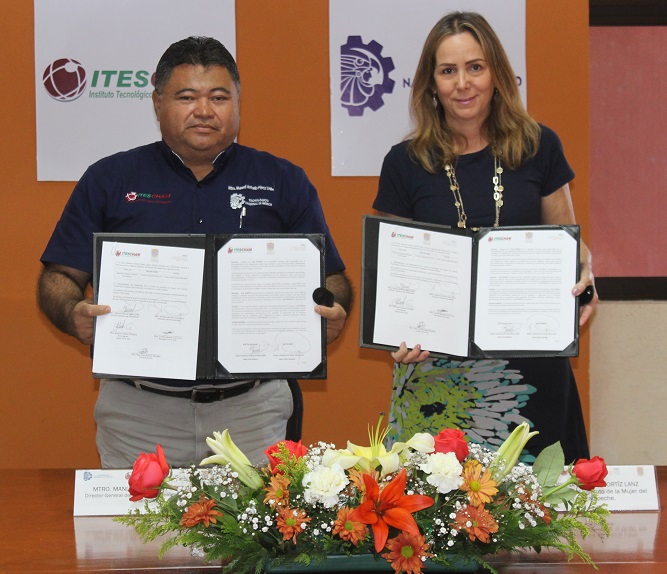Por otra parte la directora del IMEC firmó convenio también con el Director General del Instituto Tecnológico Superior de Champotón, Manuel Antonio Pérez Uribe, quien agradeció al IMEC el impulso que está generando para que de la mano con el Tecnológico se ejecuten más programas con perspectiva de género.