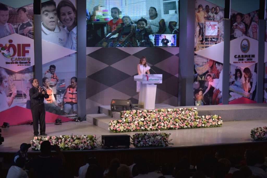La Presidenta del Patronato del DIF Estatal, Victoria Damas de Aysa, felicitó a la Presidenta del DIF Municipal de Carmen, Viridiana Suárez de Rosas, al rendir su Primer Informe de Actividades, en quien reconoció que con esfuerzo y dedicación ha dirigido la institución que encabeza.