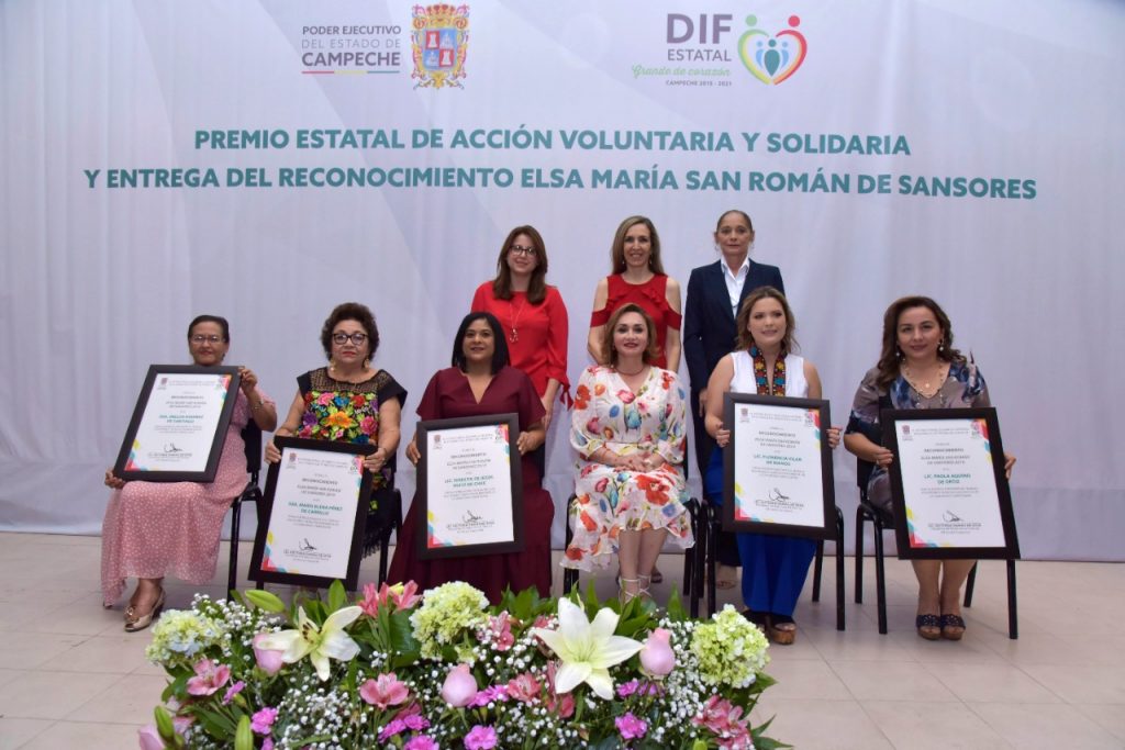 Mientras que el reconocimiento “Elsa María San Román de Sansores” como cada año se entregan a las promotoras voluntarias, quienes, con responsabilidad, dedicación y entusiasmo, colaboran en acciones de beneficio comunitario, por lo que este año las galardonadas fueron la promotora de la Secretaría de Cultura (SECULT), María Elena Pérez de Carrillo del Centro de Desarrollo Comunitario (CDC) IMI I; de la Secretaría de Turismo (SECTUR), Florencia Vilar de Manos del CDC “Morelos II”; Paola Annette Aquino de Ortiz, de la Secretaría de la Administración e Innovación Gubernamental (SAIG) del CDC Kanisté; del Colegio de Bachilleres de Campeche (COBACAM), Imelda Ramírez de Santiago que tiene a su cargo el CDC “Hampolol” y Teresita Huitz de Chuc, del Tribunal Superior de Justicia del Estado (TSJE) del CDC “San José el Alto”.
