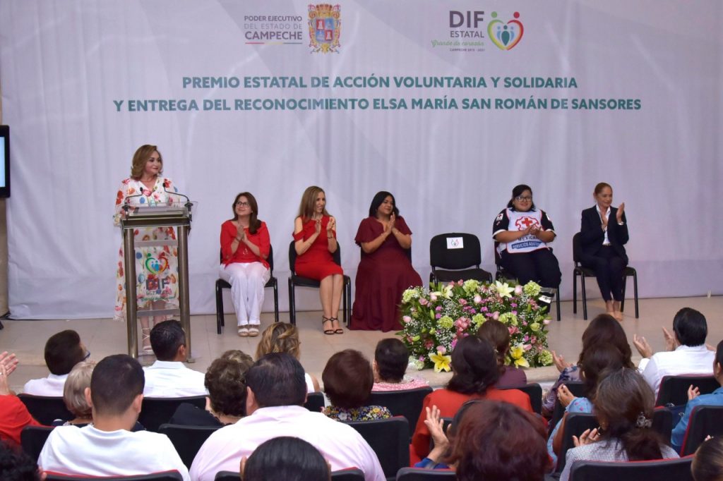 “En estos tiempos de grandes desafíos la sociedad necesita de fortalecimiento de los valores en las familias, entre los más importantes se encuentran la solidaridad y la empatía, valores que ustedes con sus acciones voluntarias son un ejemplo” precisó la presidenta del Patronato del DIF Estatal, Victoria Damas de Aysa al entregar el premio Estatal de Acción Voluntaria y Solidaria 2019 y reconocimientos “Elsa María San Román de Sansores”.