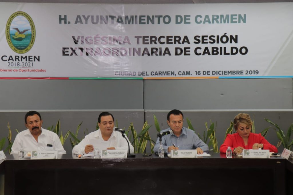 Estuvieron presentes: el Presidente Municipal de Carmen, Óscar Román Rosas González; el Secretario del Ayuntamiento, Carlos Alberto Arjona Gutiérrez; la Primera Regidora, María del Jesús Bolón Cano; la Tercera Regidora, Domitila Rico Camacho; el Cuarto Regidor, Luis Ramón Peralta May; la Quinta Regidora, Beatriz del Carmen Arcila Flores; el Sexto Regidor, Miguel Ángel Puch Rivera; la Séptima Regidora, Ariana del Rocío Rejón Lara; la Octava Regidora, Mayela Cristina Martínez Arroyo; el Noveno Regidor, Haryl Kenny Sánchez Espinoza; la Décima Primera Regidora, Rocío del Carmen Cárdenas Argáez; el Síndico de Hacienda, Sergio Argemiro Cruz Montes de Oca; la Síndica Jurídica, Elia Fabiola Zavala Díaz; el Síndico Administrativo, Miguel del Carmen Vadillo Gutiérrez.