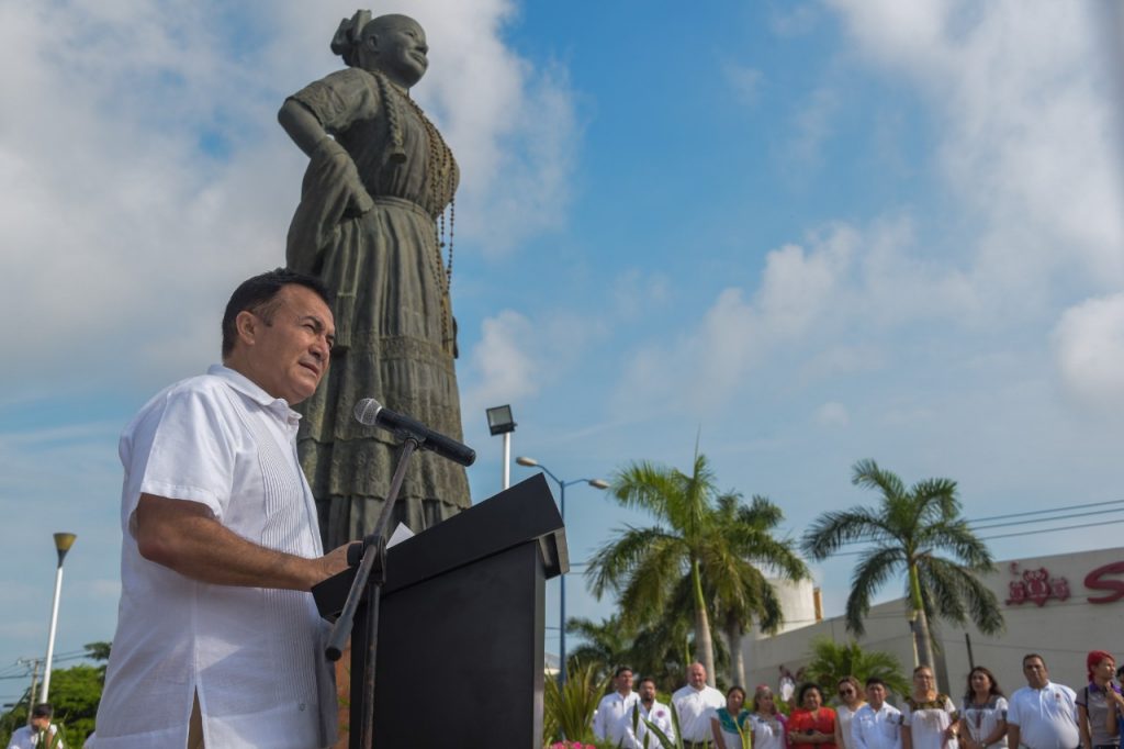El monumento a la Mujer Campechana del parque El Caminero fue la sede de este homenaje cívico de celebración además de iniciar con los festejos en el mes de la campechanidad.