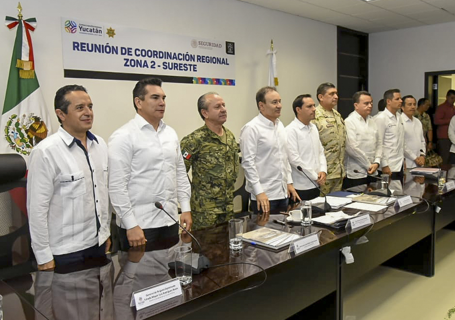 “Para dar resultados es fundamental fortalecer el compromiso de trabajar en coordinación, impulsar la participación de los municipios y establecer de manera ordenada y clara los objetivos que queremos alcanzar”, expuso Moreno Cárdenas en presencia de sus homólogos de Yucatán, Mauricio Vila Dosal; Quintana Roo, Carlos Joaquín González; Oaxaca, Alejandro Murat Hinojosa, y Veracruz, Cuitláhuac García Jiménez, así como del comandante de la Guardia Nacional, Luis Rodríguez Bucio.