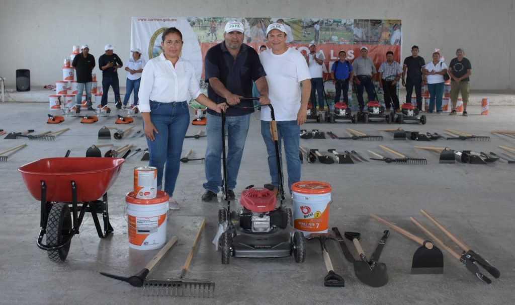 También el edil carmelita entregó equipos de herramientas de trabajo a las 2 Comisarías y 12 Agencias Municipales, así como también a la H. Junta Municipal de Sabancuy, con una inversión de más de 450 mil pesos para que puedan utilizarlas para atender las necesidades de los pobladores.