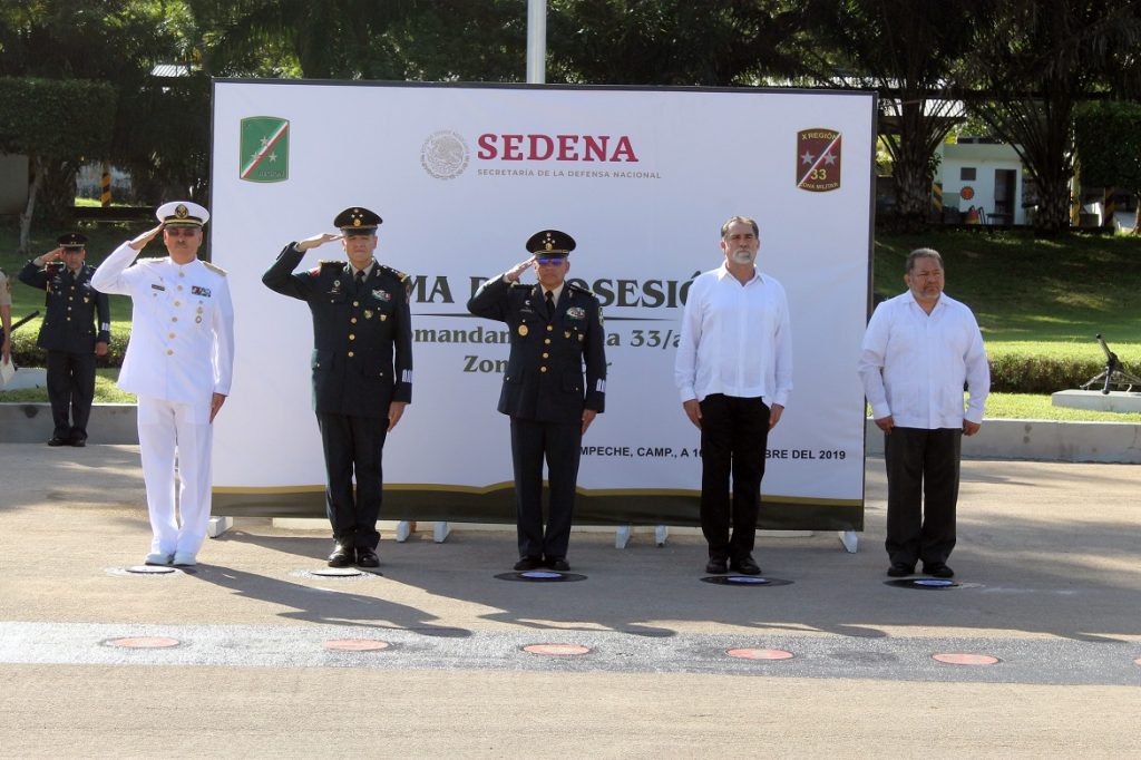 Militar y 33/a. Zona Militar, comunica que por disposición del Secretario de la Defensa Nacional, con fecha 16 de octubre del año en curso, se llevó a cabo la ceremonia de «Toma de Posesión al cargo y toma de Protesta de Bandera del C. General de Brigada Diplomado de Estado Mayor Enrique Dena Salgado», como Comandante de la 33/a. Zona Militar con sede en la Ciudad de Campeche.
