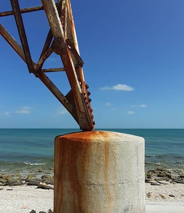 Entre los kilómetros 30 y el 34 de la vía federal 180, hay por lo menos diez torres de aproximadamente 59 metros de altura, que están en precarias condiciones, literalmente socavadas por la corrosión al estar expuestas a un ambiente con alto grado de salinidad; las torres que sostienen los cables de alta tensión podrían correr la misma suerte que la colapsada hace un año.