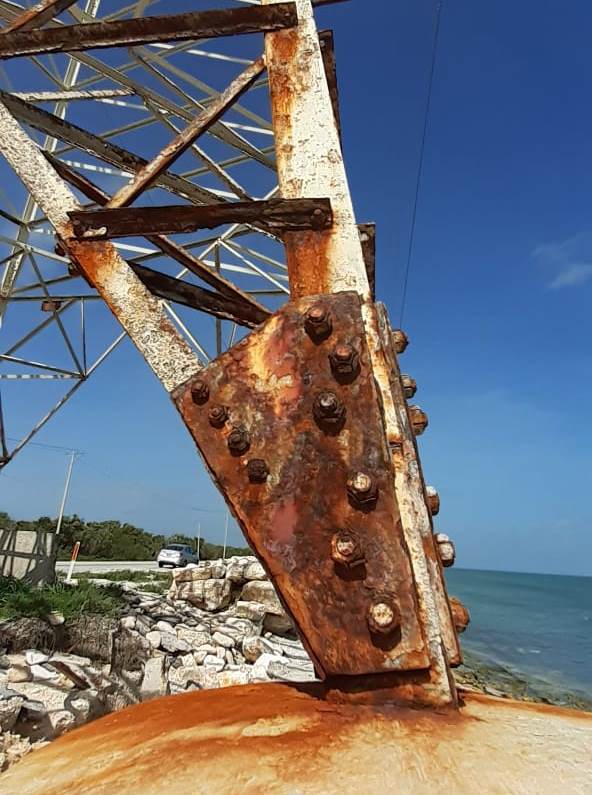 CFE ignora el grado de corrosión que presentan las torres sobre la carretera federal Carmen-Isla Aguada