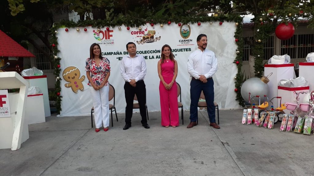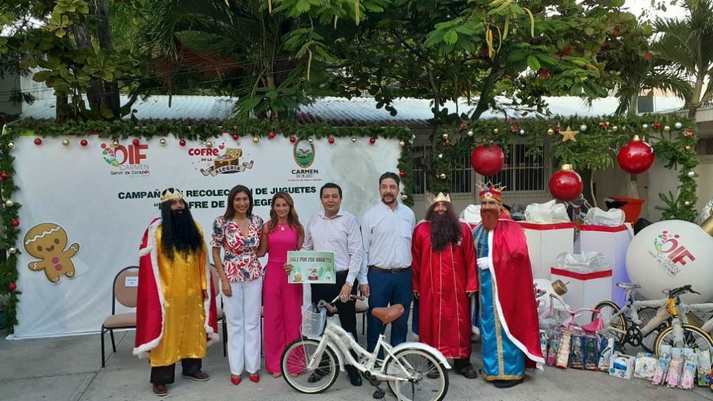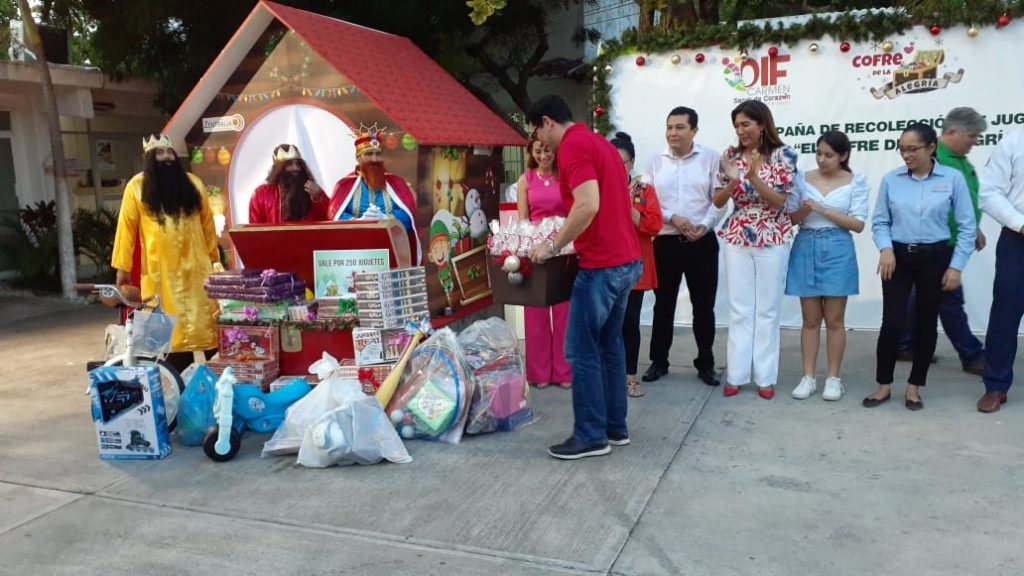 El Sistema para el Desarrollo Integral de la Familia (DIF) Carmen, que preside la Sra. Viridiana Suárez de Rosas, invita a la población en general a sumarse a la campaña de colecta de juguetes, “El Cofre de la Alegría”, con la finalidad de llevar un pequeño obsequio y un poco de felicidad a cientos de niñas y niños de escasos recursos de las comunidades del municipio y rebasar la meta alcanzada del año pasado, que fueron siete mil juguetes.