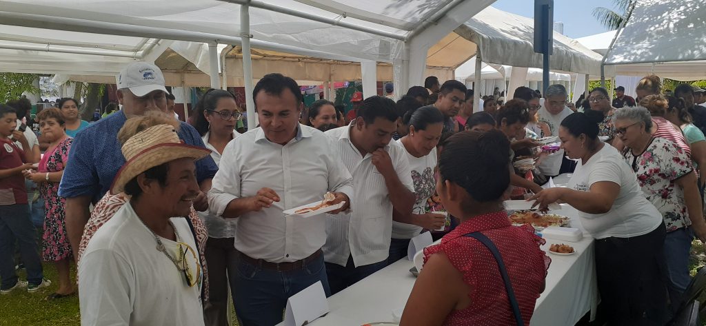 Luego de realizar un recorrido por cada uno de los stands y degustar de los ricos platillos de la muestra gastronómica; Rosas González, felicitó personalmente a cada uno de los participantes, quienes festejaron con pastel este aniversario. Agradeció, la invitación por parte del administrador Rubén Arias Trejo, de ser partícipe de esta celebración; en el que también convivió con los habitantes que llegaron a esta magna celebración.