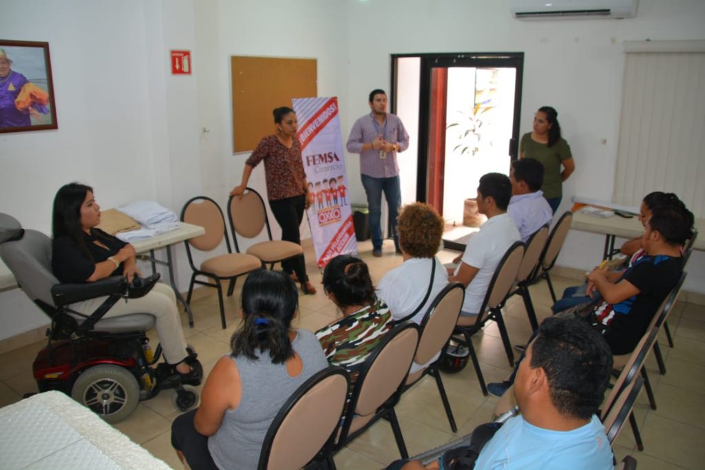 Como parte de la política de inclusión, que impulsa el Sistema Municipal para el Desarrollo Integral de la Familia (DIF) Carmen, que encabeza como Presidenta del Patronato, Viridiana Suárez de Rosas y derivado de las gestiones efectuadas ante grupo FEMSA, para seguir fortaleciendo una política laboral incluyente, un primer grupo de ocho personas con discapacidad, tomaron parte de una plática de inducción para su ingreso al Centro de Capacitación Laboral Dirigida Oxxo, con el objetivo de ocupar alguna de las vacantes existentes en la tienda de conveniencia, que les permitirá a los beneficiarios contar con una independencia económica.